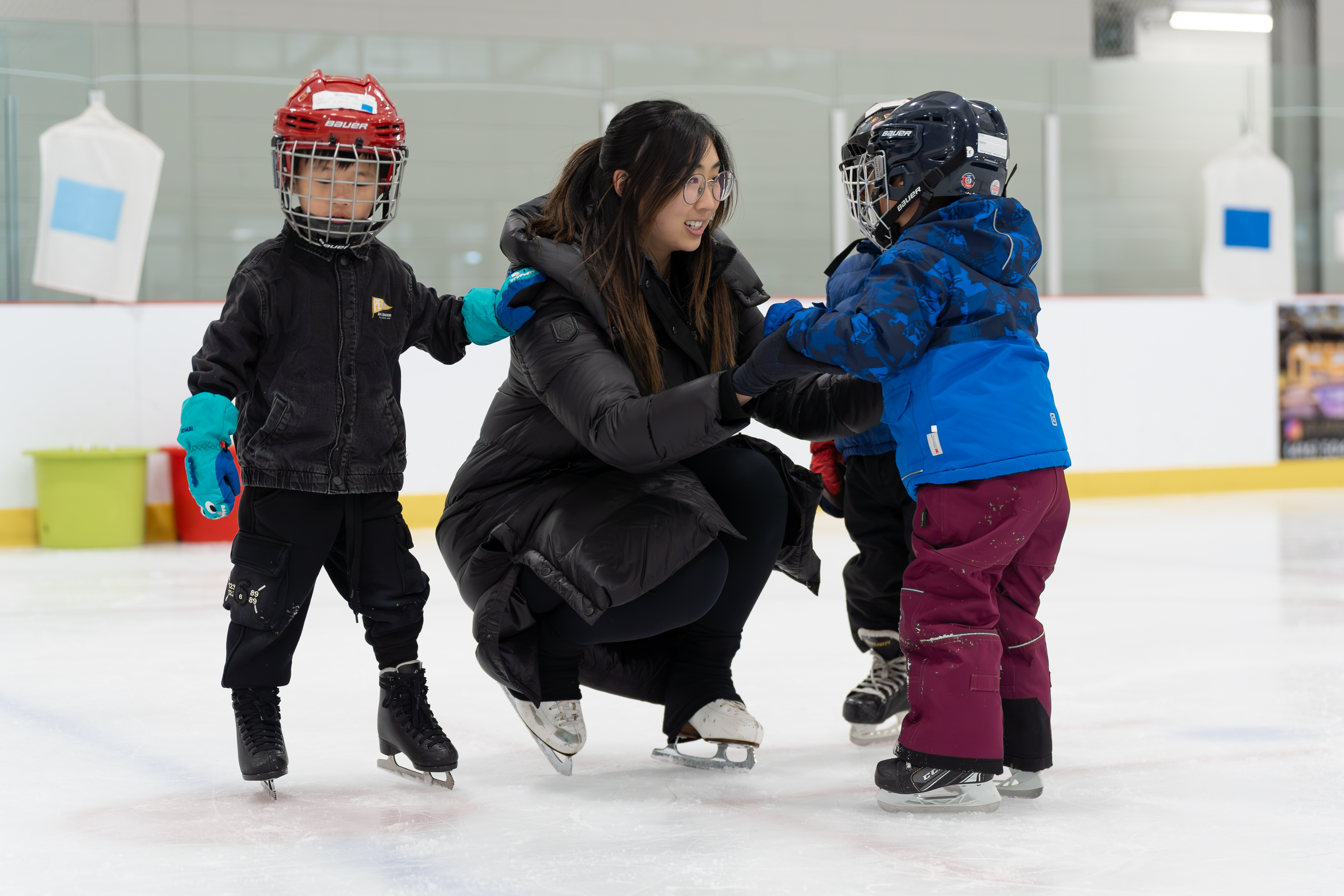 In addition to our CanSkate program, we also offer a pre-Can Skate program during our CanSkate sessions for our first-time and younger skaters aged 3-4. Skaters will learn the basics of moving forwards and backwards, as well as learning how to fall and stand up by themselves!